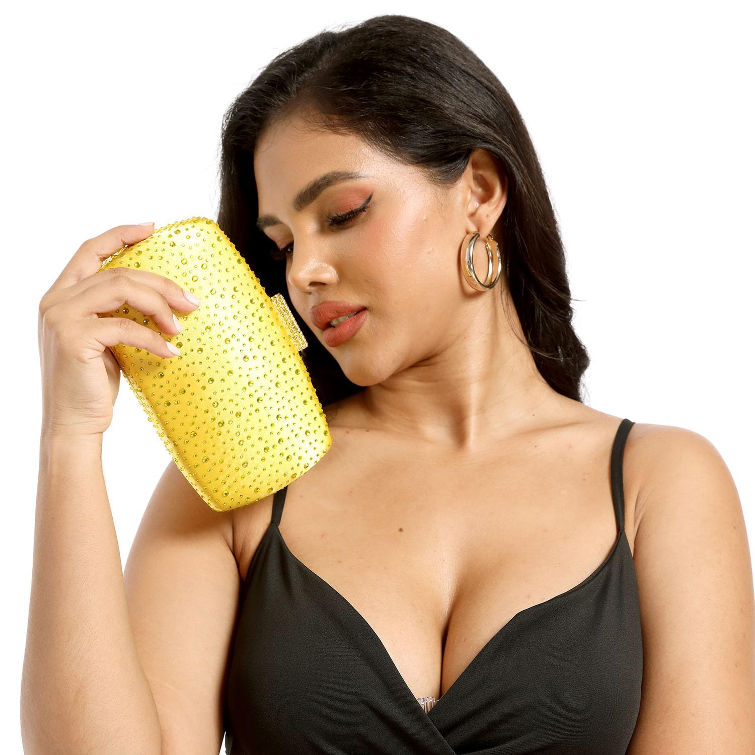 - Light-weight: Weighing 0.9 LB ( 0.4 KG ), This oblong-shape yellow diamond minaudiere clultch is a little bit heavier than a tall size coffee (12oz 355ml 330g), it is easy to carry all day long.